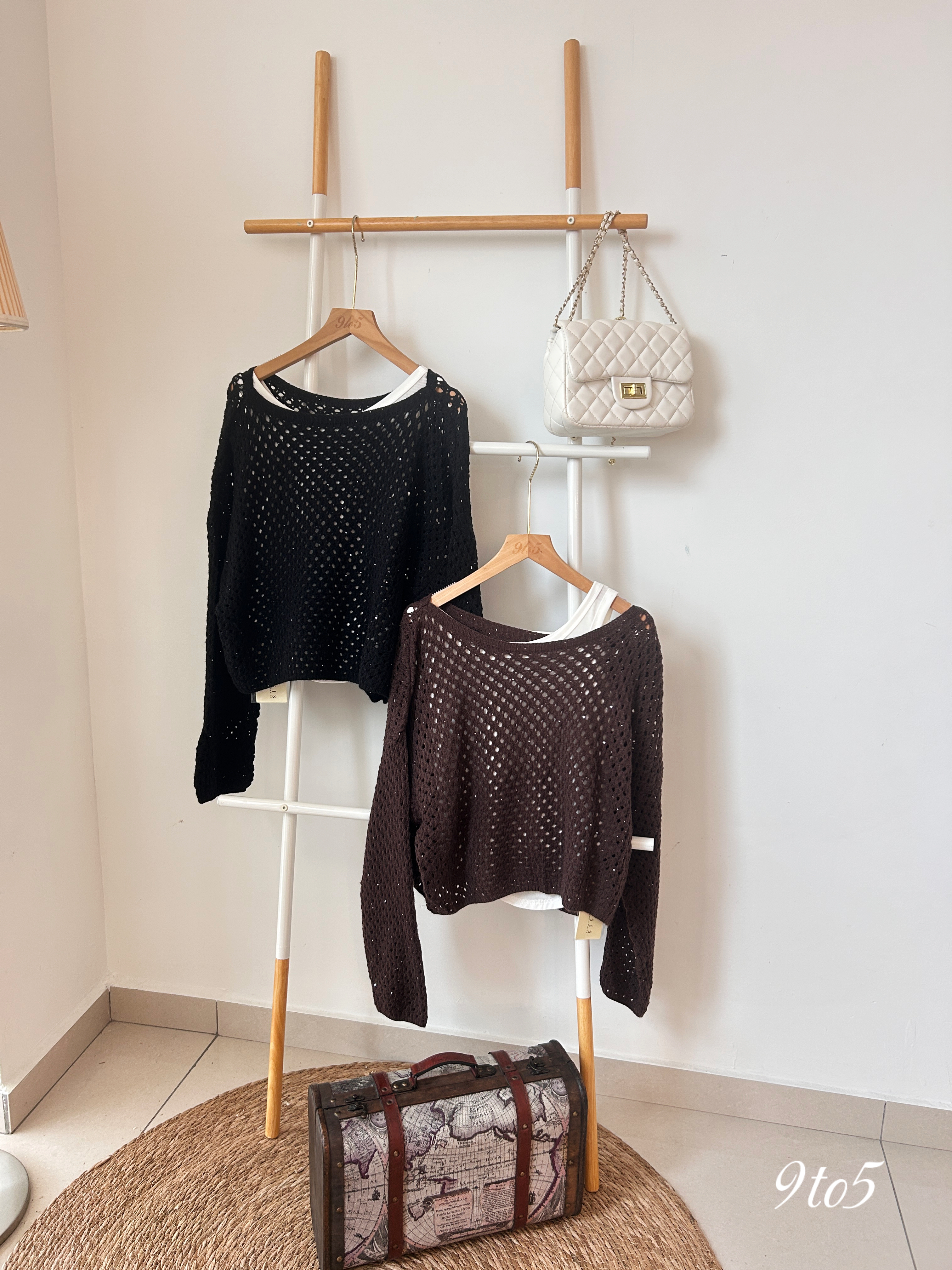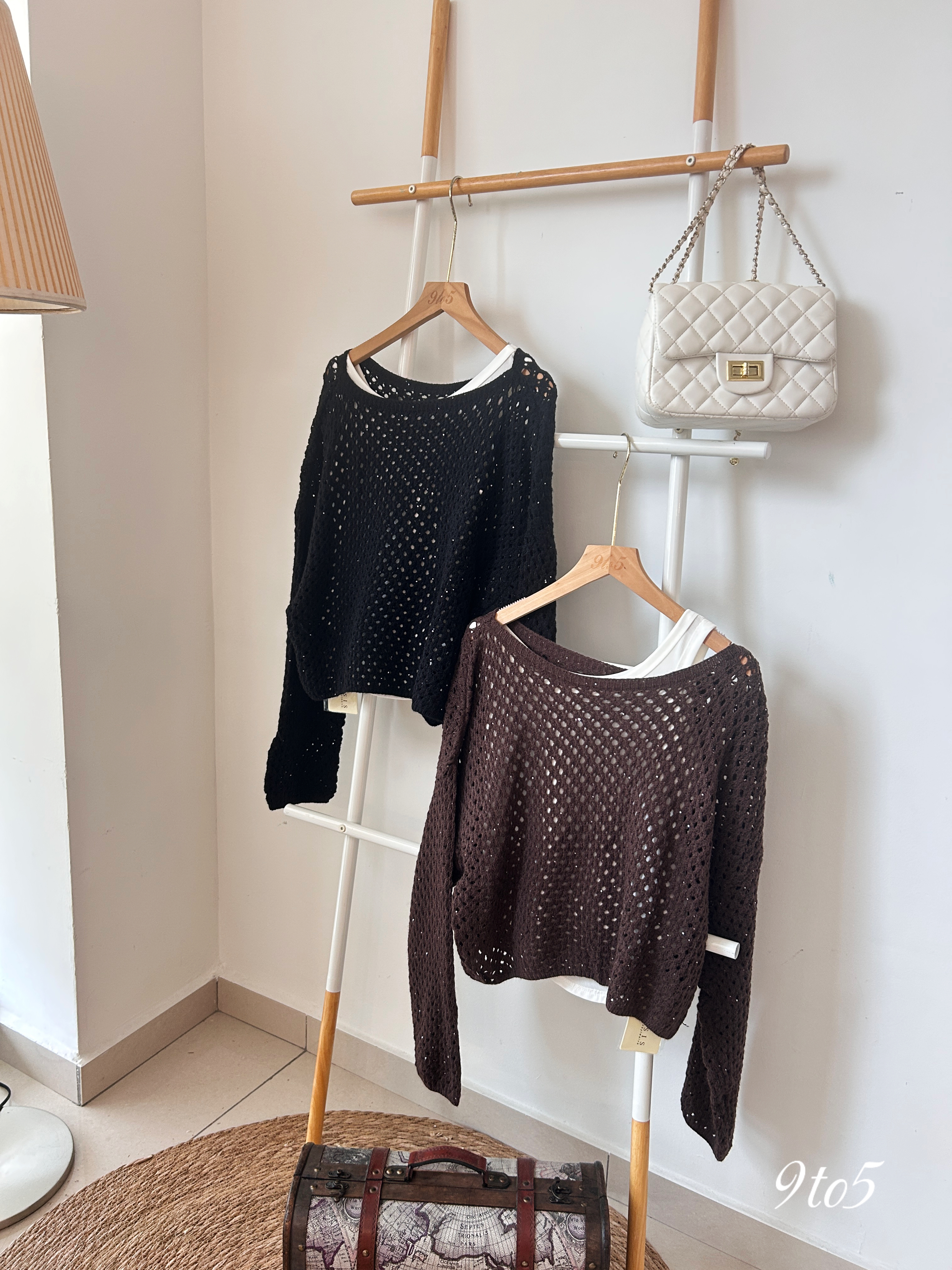 T3808 Long Sleeve Hollow Out Top - 4 Colors